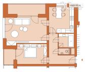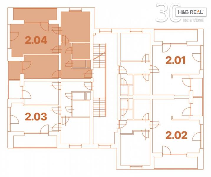 Byt č. C 2.04. se nachází v 2. NP a má dispozici 2+1. Plocha bytu: 66,0 m2. Sklep: 6,6 m2. Lodžie u bytu: 11,4 m2. Parkovací stání: 11,25 m2.