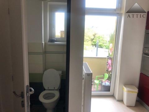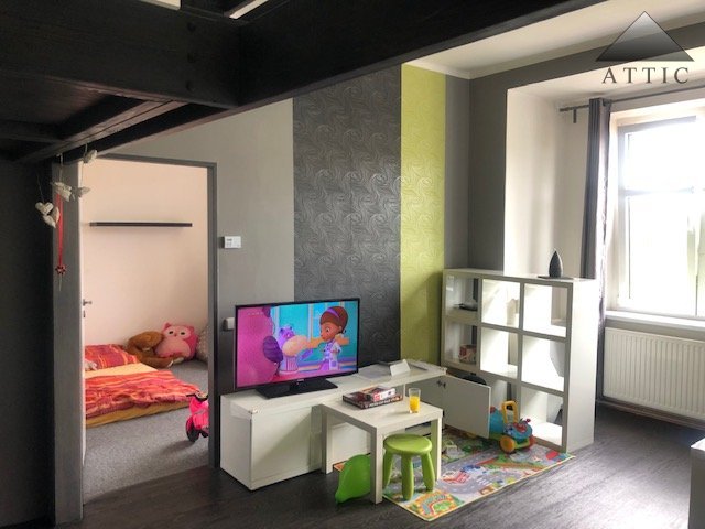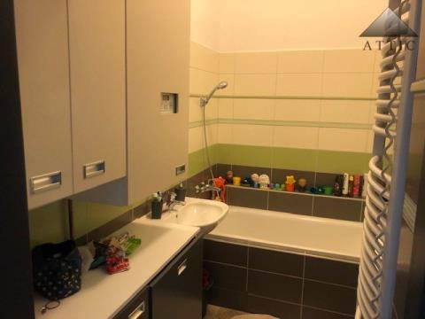 Velmi příjemný a světlý byt se západní orientací ve 3.NP pěkného činžovního domu ve Vršovicích v ulici U vršovického nádraží s vysokými stropy a velkými okny. Byt 2+1 má výměru podlahové plochy 60,5 m2 + lodžii 2,9 m2. Pokoje jsou průchozí, z kuchyně 12,4 m2 je vchod na lodžii, koupelna 4,4 m2 má vanu, umývadlo, větší úložné skříňky včetně koše na prádlo, topný žebřík, zrcadlo, vlastní plynový kotel na topení i teplou vodu a dle dohody může zůstat i pračka. Samostatné WC o výměře 1,1 m2 má okno na větrání. Prostorná kuchyňská linka má plynovou varnou desku, digestoř, myčku na nádobí, elektrickou a mikrovlnnou troubu. Z ložnice 11,9 m2 je vchod do prostorné šatny 7,2 m2 s úložným systémem, tedy není nutné mít šatní skříně. V obývacím pokoji 23,5 m2 je velké vestavěné patro na spaní. K bytu patří velký sklep 12,5 m2 v suterénu budovy. Jde o družstevní byt, nyní bez možnosti převodu do osobního vlastnictví, anuita je splacena. Fond oprav 1.927 Kč. Pěkný dům a lokalita, vysoké stropy, velká okna, doporučuji prohlídku.