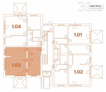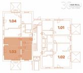 Byt č. C 1.03. se nachází v 1. NP a má dispozici 2+1. Plocha bytu: 74,0 m2. Sklep: 6,8 m2. Pozemek u bytu: 90,0 m2. Parkovací stání: 11,25 m2.