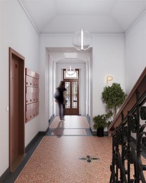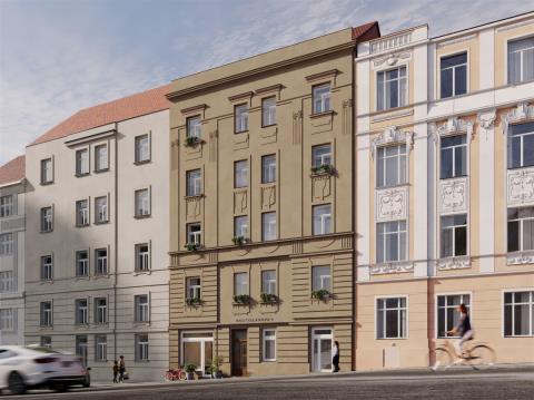 Nabízená bytová jednotka č. 53 o dispozici 2+kk a celkové ploše 58,6 m² se nachází v pečlivě zrekonstruovaném činžovním domě, v 5. nadzemním podlaží. Součástí jednotky je sklepní kóje o velikosti 1,5 m². Jednotka je dokončena do standardu „shell & core“, tedy k dokončení dle vlastních potřeb. Celý dům prochází citlivou rekonstrukcí a rezidenti budou moci využívat nové společné prostory jako jsou kolárna, kočárkárna nebo klidný vnitroblok určený k odpočinku. Lokalita nabízí příjemné rezidenční prostředí s kompletní občanskou vybaveností v okolí. V docházkové vzdálenosti jsou kavárny, restaurace, obchody, školy, zdravotnická zařízení i zastávky MHD. Na dosah je také městská zeleň a parky, které vybízejí k odpočinku či sportu.