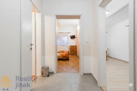 Apartmány prodáváme ve stavu po většinové rekonstrukci, která zahrnuje novou moderní koupelnu, novou podlahu v předsíni a kompletní developerskou přípravu (rozvody vody a odpadu) pro instalaci kuchyňské linky. Tu vám na přání rádi dobudujeme podle vašich představ. Na fotkách můžete vidět vizualizaci, jak bude vstupní chodba a koupelna vypadat po dokončení rekonstrukce. Revitalizací projde i celý exteriér, fasáda dostane nový nátěr a dojde k výměně starých prvků a svítidel. Každý apartmán má zajištěn přístup z venkovní kryté pavlače, vlastní vytápění, televizi a dostatek denního světla.