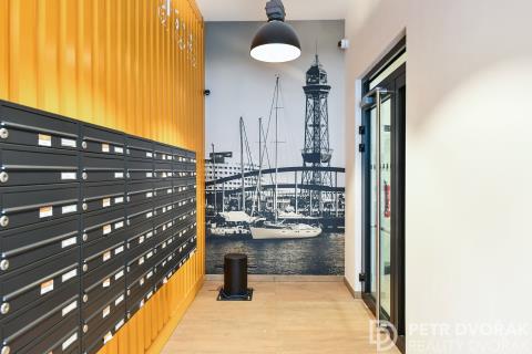 Moderní byt v oceňovaném rezidenčním projektu Green Port Strašnice od developera JRD, situovaný ve 2. nadzemním podlaží se západní orientací a nerušenými výhledy do zeleně přilehlého sportovního areálu. Dispozici 2+kk tvoří prosvětlený obývací pokoj s plně vybaveným kuchyňským koutem a navazující ložnice. Velkoformátová okna s izolačními trojskly a elektricky ovládanými exteriérovými žaluziemi zajišťují v interiéru příjemné klima po celý rok. Byt je vybaven systémem řízeného větrání s rekuperací tepla a inteligentním systémem Somfy TaHoma. Rezidence funguje jako uzavřený areál s privátním vnitroblokem, nepřetržitou ostrahou a komunitním zázemím včetně kavárny a vinárny v parteru. K bytu náleží zděný sklep s alarmem o výměře 4 m². Možnost dokoupení venkovního parkovacího stání. Stanice metra Želivského (linka A) a tramvajové zastávky v docházkové vzdálenosti. Kompletní občanská vybavenost a sportovní zázemí v bezprostředním okolí. Celková plocha 39,5 m² | sklep 4 m² | 2. NP | osobní vlastnictví | kolaudace 2022