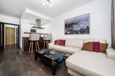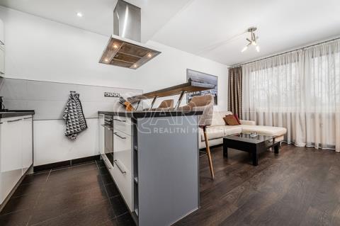 Byt je po kompletní, velmi nadstandardní, rekonstrukci, dotažené do detailu. Tvoří jej dvě prostorné místnosti - obývací pokoj s kuchyňským koutem (20m2) a ložnice (12m2).