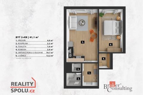 K prodeji, Byt 2+kk, 44 m2 Praha 11, Benkova