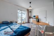 • světlý obývací pokoj s kuchyňským koutem a plně vestavěnými spotřebiči