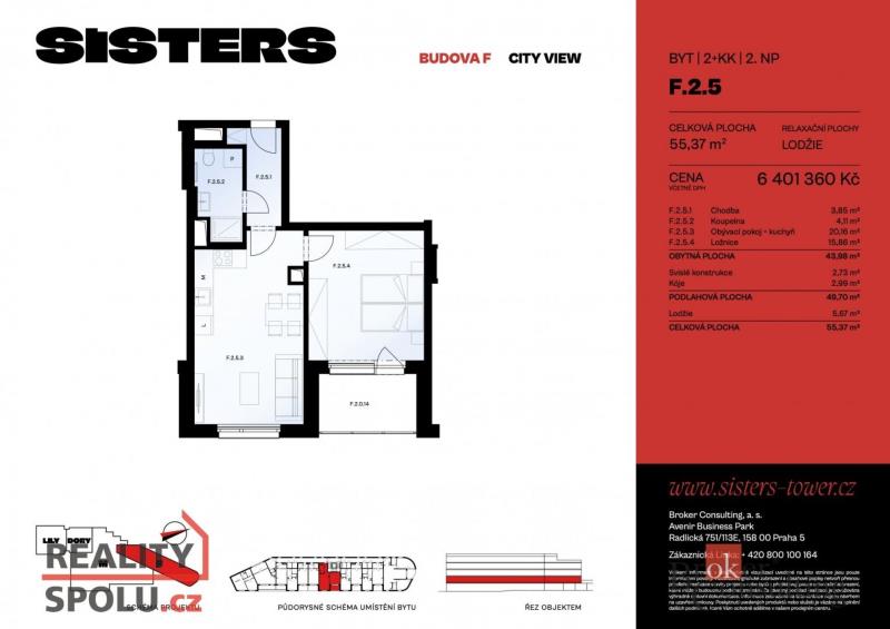 Na prodej byt 2+kk ve 2. nadzemním podlaží, který přináší technologický a komfortní standard, jaký v Plzni nemá obdoby. Byt nabízí komfortní podlahové vytápění v celém bytě, moderní koupelnu a vinylové podlahy. Součástí je sklepní kóje a možnost dokoupení parkovacího stání v podzemních garážích. Projekt Sisters představuje výjimečný developerský projekt, který se stane novou dominantou města Plzně. Dvě elegantní výškové věže v moderním architektonickém pojetí nabídnou nadstandardní bydlení, kancelářské i komerční prostory v atraktivní lokalitě Náměstí Českých bratří, jen pár minut od historického centra města. Sisters propojuje městský život, komfort a prestiž v jednom harmonickém celku. Rezidenční část projektu je rozdělena do čtyř úrovní standardu, které umožňují vybrat si bydlení přesně podle nároků a životního stylu budoucích majitelů. Každý standard nabízí vysokou kvalitu provedení, liší se však rozsahem použitých materiálů, vybavením a úrovní komfortu. Byty v nejvyšších patrech pak mají možnost využívat společné klubové patro ve 23. a 24. patře, kde je k dispozici fitness, wellness s bazénem, dětský koutek a místa k relaxaci. Součástí projektu je také recepce ve vstupní lobby a denní bistro, které jsou umístěny ve výškové budově, podzemní parkoviště a mnoho dalšího. V projektu Sisters nabízíme byty od 1+kk až po 4+kk různých rozměrů i dispozic. Pro konkrétní nabídku nás neváhejte kontaktovat. Energetický štítek budovy je v současné době ve zpracování. Dle zákonné povinnosti je proto dočasně uváděna energetická třída G. Předpokládaná energetická náročnost budovy odpovídá třídě B.