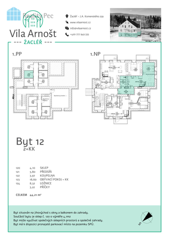 Nabízíme k prodeji kompletně zrekonstruovaný byt ve vile Arnošt v části obce Žacléř, situovanou na adrese J. A. Komenského. Tento byt poskytuje dostatek prostoru a je vhodný jak k trvalému bydlení, tak k pronájmu. Může být ideální místem k bydlení či k rekreaci nebo investicí pro ty, kteří hledají výnosný projekt v oblasti realitního trhu. Vila prochází kompletní rekonstrukcí a disponuje celkem 9 byty s balkónem. Byt v 1.NP o dispozici 2+kk je situován na jihovýchod s okny a balkonem do zahrady. Součástí bytu je sklep o výměře 4,1m2. Byt má k dispozici parkovací místo přímo u domu na pronajatém pozemku. Dům je vybaven moderním tepelným čerpadlem, každý byt kuchyňskou linkou a VZT se zpětnými klapkami. K dispozici jsou také zvonky s kamerou pro zvýšení bezpečnosti a komfortu nájemníků a datová zásuvka v každém bytě. S celkovou užitnou plochou 41 m2 Vila se nachází v klidné a přesto dobře dostupné části Žacléře s veškerou občanskou vybaveností včetně zdravotnických zařízení, pošty a supermarketu v dosahu, což zvyšuje atraktivitu lokality. Díky dobré dopravní dostupnosti vlakem, silnicí a autobusem je tato lokalita ideální pro ty, kteří ocení snadný přístup do okolních obcí a měst. Dálnice bude vzdálena pouhých 5 km od domu. V případě zájmu o další informace či prohlídku nás neváhejte kontaktovat.