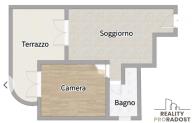 Nemovitost se skládá ze vstupní haly, světlého obývacího pokoje s kuchyňským koutem a přímým vstupem na terasu. Dále nabízí prostornou dvoulůžkovou ložnici s výhledem na terasu a koupelnu s oknem, vybavenou sprchovým koutem.