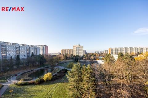 Velkým benefitem bytu je orientace obou pokojů na západ. Z oken se díváte přímo do zeleně – na parčík s jezírkem, který působí jako malá oáza klidu mezi domy. Plastová okna s dvojskly dobře tlumí hluk a zároveň pustí dovnitř dostatek denního světla. Společné prostory domu jsou čisté, udržované a působí velmi příjemně. Panelový dům je kompletně zateplený, energetický štítek vychází jako velmi úsporný, což se příznivě odráží i na provozních nákladech. Fond oprav a náklady na dům činí zhruba 1 975 Kč/měsíc + vlastní spotřeba vody a energií.