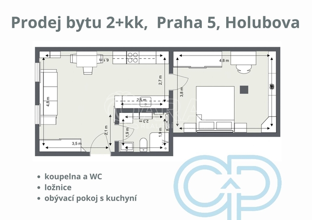K prodeji, Byt 2+kk, 45 m2 Praha 13, Brdičkova