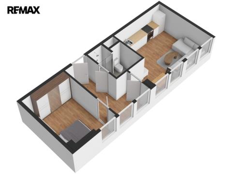 Výměry: obývací pokoj s kuchyňským koutem 20,8 m2, pokoj 13 m2, předsíň 8,8 m2, koupelna 4,8 m2, sklep 2,8 m2, svislé konstrukce 1,3 m2.