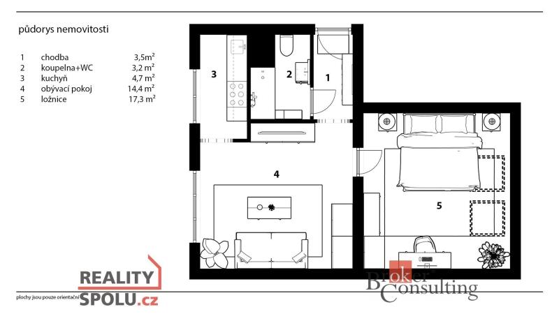 Byt se nachází na Jiráskově náměstí a jeho celková plocha činí (44,9 m²), sklep (4,71m²). Hned u vstupu Vás přivítá praktická vestavěná skříň s botníkovou stěnou, která zůstává k dispozici novým majitelům či nájemníkům. V koupelně zase potěší prostorná rohová vana, ideální pro večery, kdy si chcete dopřát chvilku klidu.