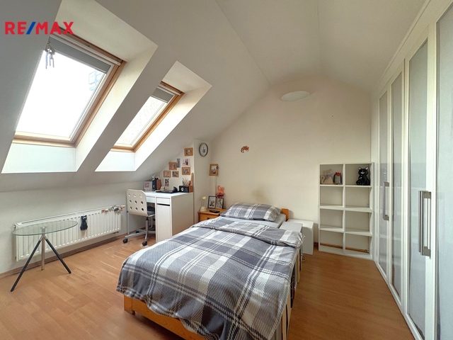 Nabídka prodeje moderního, příjemně prostorného, mezonetového, bytu s dispozicí 2+kk (upraveno na 3+kk) o velikosti 44 m2, který je situovaný v atraktivní lokalitě Prahy 3 – Žižkov (ulice Buchovcova) s výbornou dobrou dopravní dostupností do centra. Díky úpravě bytu se užitná plocha zvětšila na cca 50 m2. Byt leží v 5. a 6. NP cihlového domu s výtahem. Interiér spodního patra bytu tvoří vstupní předsíň, dále pak velký obývací pokoj s kuchyňským koutem (zařízená kuchyňská linka – sklokeramická varná deska, elektrická trouba, digestoř, myčka nádobí, lednice s mrazákem) a koupelna s vanou + WC. V patře se nachází dva samostatné pokoje (jeden pokoj vznikl doděláním jako menší 2. ložnice) a šatní místnost. Patra jsou propojena dřevěným schodištěm. Pokoje a předsíň jsou osazeny plovoucími podlahami. V koupelně je příjemná dlažba. Ohřev vody a vytápění zajišťuje vlastní plynový kotel. V bytě jsou 2 klimatizační jednotky. Díky velkým dřevěným oknům v obývacím pokoji a střešním oknům v patře je byt příjemně světlý a prosluněný. Součástí domu je uzavřená zahrada, která je k dispozici všem vlastníkům bytů v domě. Byt leží klidné lokalitě s kompletní občanskou vybaveností v dosahu (potraviny, pošta, lékárna, restaurace, kavárny, sportovní zařízení, ...) a výbornou dopravní dostupností do centra Prahy (zastávka tramvaje cca 150 m od domu). Pro více informací kontaktujte makléře nabídky.