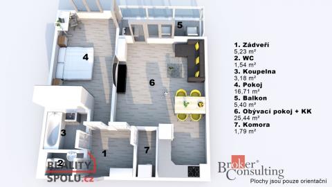 Nabízíme k prodeji útulný byt 2+kk v ulici Antonína Petrofa v Hradci Králové. Nachází se v 1. nadzemním podlaží novostavby s výtahem, která byla zkolaudována v roce 2022. Bytová jednotka je součástí žádané lokality v ulici Antonína Petrofa v městské části Nový Hradec Králové. Byt o celkové podlahové ploše 58 m² nabízí dispozici vstupní chodby, obývací pokoj s kuchyňským koutem, jeden samostatný pokoj, koupelna s vanou, samostatné WC a komora. K bytu náleží balkony o velikosti 5,16 m² - přístupný jak z obývacího pokoje i ložnice. Součástí prodeje je také sklepní kóje s výměrou 2,13 m² a garážové parkovací stání 21 m². Celkové měsíční náklady včetně fondu oprav, elektřiny a vody činí 3 666 Kč/měs. PENB B. Díky své dispozici a modernímu provedení je byt ideální jak pro rodinné bydlení, tak pro ty, kteří hledají komfortní a klidné zázemí v dosahu centra města. V bezprostředním okolí je kompletní občanská vybavenost – mateřská i základní škola, obchodní centrum Futurum, supermarkety, restaurace, zdravotní středisko a zastávky MHD. Klidná lokalita zároveň nabízí možnost relaxace a volnočasového vyžití v blízkých městských lesích. Vzhledem k častému zajišťování hypotečních úvěrů pro naše klienty máme exkluzivní podmínky financování, se kterým rádi pomůžeme Váš daný budoucí byt financovat a vyjednat lepší podmínky. Jestliže Vás tento byt zaujal, pak už neváhejte ani minutu, kontaktujte nás a tento byt může být vaším novým domovem! Jsme Broker Consulting, a.s. Finance, Reality, SPOLU! [ID 77736]