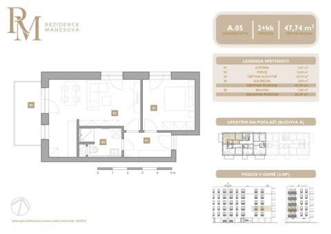 Světlý a moderně řešený byt 2+kk s balkonem v projektu Rezidence Mánesova v Lipníku nad Bečvou představuje ideální volbu pro páry, mladé rodiny nebo investory. Byt je vybaven vinylovými podlahami, teplovodním podlahovým vytápěním, kuchyňskou linkou v ceně bytu, přípravou pro venkovní žaluzie a u bytů ve 4.–6. NP také přípravou na klimatizaci. Interiérové prvky je možné zvolit ve světlé (2NP, 4NP, 6NP) nebo tmavé variantě (3NP, 5NP). Součástí prodeje je nutnost zakoupení venkovního parkovacího stání, k bytu lze dále dokoupit sklepní kóji. Rezidence se nachází v klidné části města s kompletní občanskou vybaveností – obchody, školy, restaurace i zastávka veřejné dopravy jsou v docházkové vzdálenosti. Byty 2+kk kombinují kvalitní zpracování, příznivou cenu a moderní styl bydlení. Dokončení výstavby 12/2026.