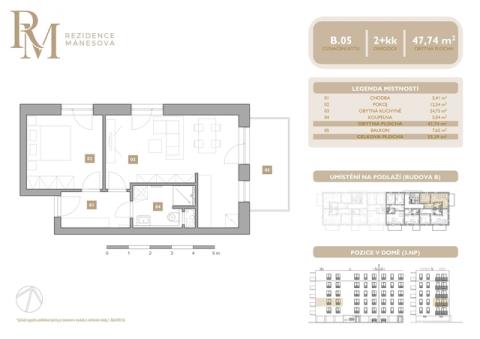 Světlý a moderně řešený byt 2+kk s balkonem v projektu Rezidence Mánesova v Lipníku nad Bečvou představuje ideální volbu pro páry, mladé rodiny nebo investory. Byt je vybaven vinylovými podlahami, teplovodním podlahovým vytápěním, kuchyňskou linkou v ceně bytu, přípravou pro venkovní žaluzie a u bytů ve 4.–6. NP také přípravou na klimatizaci. Interiérové prvky je možné zvolit ve světlé (2NP, 4NP, 6NP) nebo tmavé variantě (3NP, 5NP). Součástí prodeje je nutnost zakoupení venkovního parkovacího stání, k bytu lze dále dokoupit sklepní kóji. Rezidence se nachází v klidné části města s kompletní občanskou vybaveností – obchody, školy, restaurace i zastávka veřejné dopravy jsou v docházkové vzdálenosti. Byty 2+kk kombinují kvalitní zpracování, příznivou cenu a moderní styl bydlení. Dokončení výstavby 12/2026.
