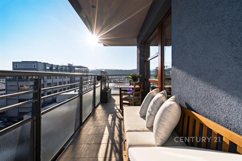 Dominantou bytu je slunná terasa o rozloze 21 m², poskytující dokonalé soukromí pro relaxaci, společenská setkání i klidné chvíle s výhledem do okolí.