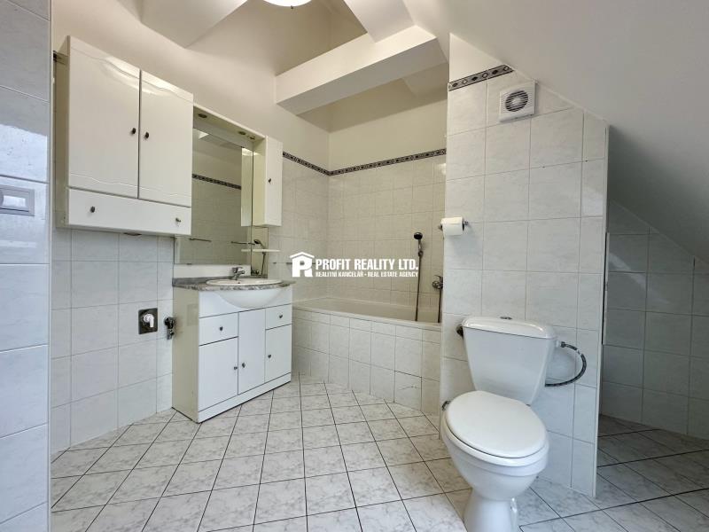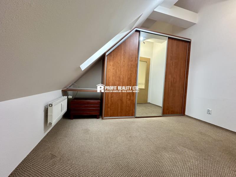 Zprostředkujeme vám prodej družstevního bytu o dispozici 2 + kuchyňský kout, který se nachází ve 4. NP bytového domu umístěného v historickém centru města Beroun. Výměra bytu činí 57 m2. Podkrovní byt se skládá ze vstupního schodiště, obývacího pokoje s kuchyňským koutem, menší ložnice ve tvaru písmene L a prostorné koupelny s vanou a toaletou. Kuchyňský kout je vybaven kuch. linkou. V ložnici je umístěna vestavná skříň. Bytový dům je ve velmi dobrém technickém stavu (nový plynový kotel ve vlastní kotelně). Jedná se o družstevní vlastnictví (anuita splacena). V domě je k dispozici společná kolárna, prostor pro uložení odpadu. Velkou předností domu je udržovaná společná zahrada ve vnitrobloku, kde je možnost užívání bazénu, altánu či grilu. Dům se nachází v centru města a veškerá občanská vybavenost je v dochozí vzdálenosti. Nájezd na D5 je vzdálen 1 km.