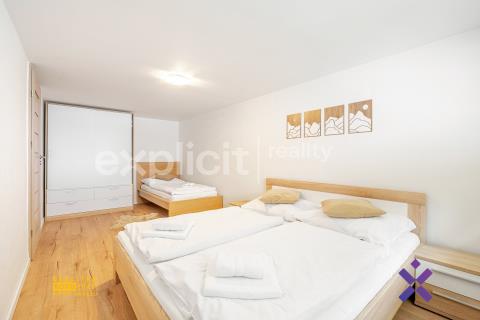Z obývacího prostoru je vstup do ložnice, ve které se nachází manželská postel, samostatná postel a velká šatní skříň, poskytující dostatek komfortu i úložného prostoru.