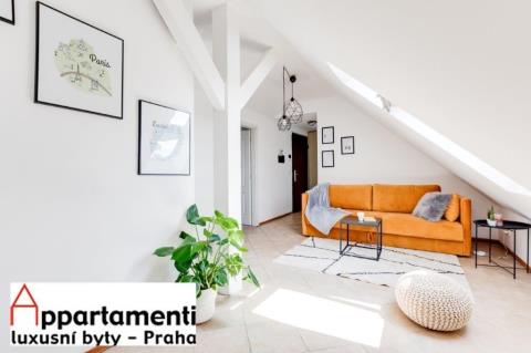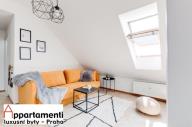 Tento podkrovní ateliér o velikosti 58,2m2 má jednu ložnici, prostorný obývací pokoj s kuchyňským koutem a s koupelnou se sprchovým koutem toaletou a bidetem, umyvadlem. Ve společných prostorách je balkón. Apartmán se nalézá přímo v historickém srdci hlavního města Prahy, v blízkosti Václavského náměstí. V současné době je dlouhodobě pronajímán a představuje tak vynikající investiční příležitost.