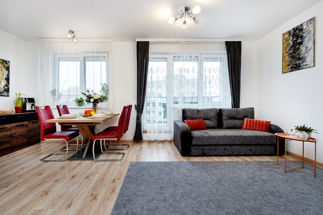 Prodej moderního bytu o dispozici 2+kk s terasou o celkové výměře 57,5 m² (48,5 m2 byt + 9 m2 terasa), který se nachází v 6. nadzemním podlaží obytného komplexu v ulici Kralupská, Brandýs nad Labem. Byt nabízí prostorný obývací pokoj s kuchyňským koutem, ložnici, vstupní prostory s dostatečným úložným prostorem a koupelnu. Velkou předností bytu je prostorná terasa s výhledem na okolí, která nabízí příjemné místo k odpočinku. K bytu dále náleží úložná kóje v přízemí a v objektu je k dispozici společná kočárkárna/kolárna. Bytový komplex byl kolaudován v roce 2013. Je umístěn v klidné části města, která poskytuje kompletní občanskou vybavenost v pěší dostupnosti – školy, školky, obchody, nemocnice i sportoviště. V bezprostřední blízkosti se nácházejí cyklostezka a zelené plochy Central parku. Lokalita má výborné dopravní napojení na Prahu a to jak pro individuální dopravu, tak MHD. Dům je v blízkosti autobusové zastávky V Olšinkách s přímým spojem do Prahy (metro zast. Černý Most) V roce 2020 prošel byt částečnou rekonstrukcí. Poplatky činí 2 217 Kč/měsíc + náklady na elektřinu. Byt je ideální volbou jak pro vlastní bydlení, tak i jako investice k pronájmu. Pro tuto nemovitost jsou stanoveny nadstandartní podmínky pro poskytnutí úvěru a zcela bez nákladu za vyřízení.