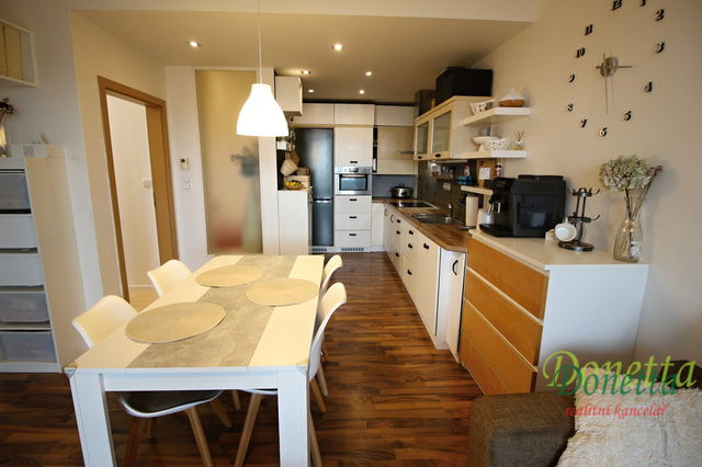 Nabízíme k prodeji byt 2+kk s balkónem v osobním vlastnictví, novostavba z r. 2008, ul. Labská louka, Hradec Králové - Třebeš. Byt o celkové výměře 60 m2 (52 m2 + 8 m2 balkón) se nachází v 5. nadzemním podlaží cihlového domu s výtahem. Obývací pokoj se vstupem na balkón a výhledem do zeleně, kuchyňská linka kompletně vybavená spotřebiči - sklokeram. deska, kombi trouba, lednice s mrazákem, myčka. Prostorná ložnice, v chodbě velká vestavěná skříň. V koupelně vana, toaleta samostatně. Vytápění ústřední dálkové, zavedena kabel. TV a internet. Vlastní parkovací stání. Klidná lokalita s dostatkem zeleně a dobrou dostupností do centra města. Rozumné měsíční náklady. K nastěhování ihned.