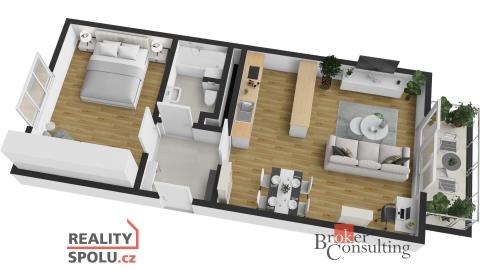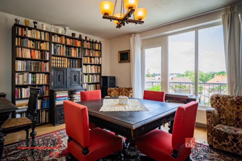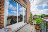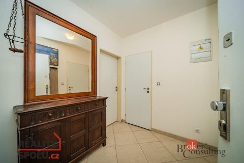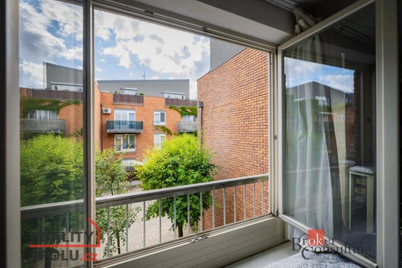 Byt má ideální polohu v prvním patře s orientací východ-západ, pohledu z balkonu vévodí silueta kostela Všech svatých. Obě obytné místnosti mají maximálně využitelný tvar téměř čtverce, v každé je velké třídílné francouzské okno.