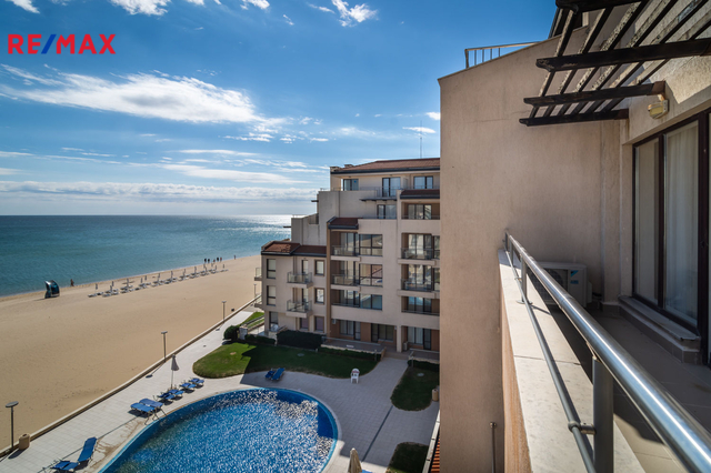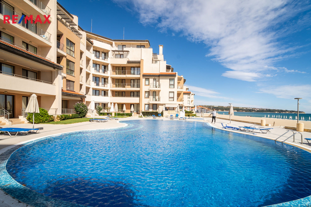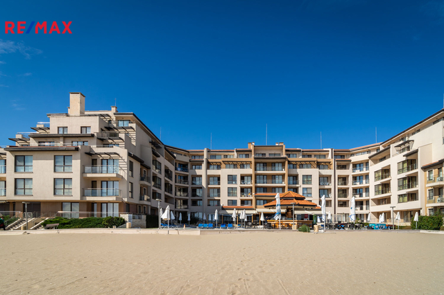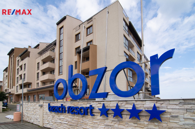 Apartmán na prodej v čtyřhvězdičkovém apartmánovém hotelu, přímo na pláži s výhledem na moře, který se nachází na pláži v Obzoru, 50 km od Varny a 60 km od Burgasu.