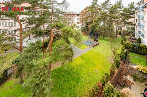Dispozice je praktická a funkční. Obývací pokoj s kuchyňským koutem o velikosti 20,24 m² tvoří přirozené centrum bytu a nabízí příjemný výhled do vnitrobloku se soukromou zahradou, kterou mohou využívat výhradně rezidenti domu. Jiho západní orientace do zeleně zajišťuje klidné prostředí a přímé napojení na stezku směrem k Hamru. Ložnice o velikosti 18,86 m² poskytuje dostatek prostoru nejen pro velkou šatní skříň, ale i pracovní kout. Součástí bytu je dále předsíň (7,14 m²), praktická komora (3,72 m²), koupelna s vanou (3,99 m²) a samostatné WC (1,88 m²).