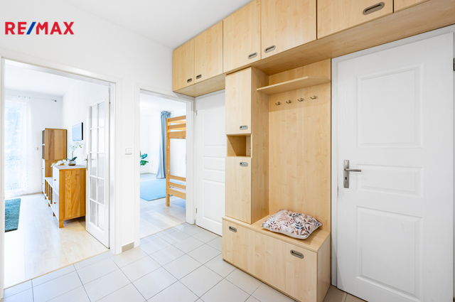 K bytu náleží lodžie, prostorná sklepní kóje a navíc společná uzamykatelná místnost na patře sdílená pouze třemi byty, což výrazně zvyšuje komfort úložných prostor. V bytě jsou plovoucí podlahy a je možné jej koupit včetně vybavení dle fotografií. Nemovitost je ve velmi dobrém stavu a umožňuje okamžité užívání bez nutnosti dalších investic.