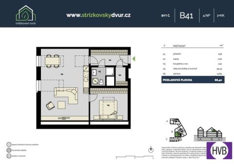 Nabízíme k prodeji byt v osobním vlastnictví o dispozici 2+kk, o výměře 68 m², ve 4. NP novostavby v projektu Střížkovský dvůr, Praha 8 – Střížkov. Dispozice zahrnuje vstupní chodbu, prostorný obývací pokoj, ložnici, šatnu, koupelnu se sprchovým koutem a samostatné WC. Součástí projektu je možnost dokoupení parkovacího stání a sklepa. Projekt Střížkovský dvůr nabízí moderní bydlení ve vysokém standardu – dřevěné podlahy, velkoformátové obklady v koupelnách a kvalitní dřevěná okna. V bytě je instalována klimatizace a připravené rozvody pro venkovní žaluzie. Dokončení je plánováno na listopad 2025. Lokalita poskytuje veškerou občanskou vybavenost – školy, školky, gymnázia, zdravotnická zařízení, restaurace i obchody. Metro C Střížkov je vzdáleno jen 5 minut chůze. V okolí se nachází park Přátelství, Prosecké skály, vinice Máchalka či lesopark Ládví. Nemovitost lze financovat hypotečním úvěrem s nejvýhodnější úrokovou sazbou, kterou vám rádi pomůžeme zajistit. Ohledně dotazů či zájmu o prohlídku mě neváhejte kontaktovat.