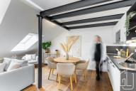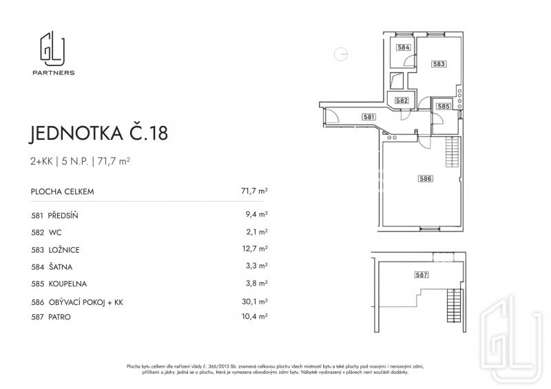 .GLJ Partners exkluzivně nabízí k prodeji podkrovní byt 2+kk s galerií o celkové ploše 71,7 m v Praze 8 Karlín, jen pár kroků od zeleně Kaizlových sadů. Byt se nachází v nejvyšším podlaží udržovaného činžovního domu s výtahem a zaujme atypickým řešením interiéru i příjemným výhledem směrem do parku. Při vstupu do bytu vás přivítá prostorná a světlá chodba, která plynule navazuje na hlavní obytný prostor. Obývací pokoj s kuchyňským koutem (30,1 m) tvoří otevřený a vzdušný celek. Nad obytnou částí se nachází galerie (10,4 m), která se prakticky nabízí jako pracovní místo nebo čtenářský kout. Ložnice (12,7 m) je orientována do tichého vnitrobloku, bez šikmin, a disponuje vlastní šatnou či menší pracovnou, dále nikou pro vestavěnou skříň. Koupelna je vybavena sprchovým koutem a je zde připravené připojení i místo pro pračku, samostatné WC je zvlášť. Byt je ve velmi dobrém stavu a nevyžaduje zásadní investice. V interiéru jsou dřevěné podlahy a dlažba, vysoké stropy a nová dřevěná okna. Byt je zároveň připraven na instalaci klimatizace. Dům v posledních letech prošel částečnou modernizací. Kuchyň je vybavena myčkou, lednicí, mikrovlnnou troubou, varnou deskou, troubou a digestoří. V bytě je instalován plynový kotel. Karlín nabízí kompletní občanskou vybavenost, oblíbené kavárny a restaurace, služby i kulturní zázemí. V blízkosti se nachází Forum Karlín a business centra, park Kaizlovy sady je přímo před domem. Stanice metra Invalidovna a Křižíkova a tramvajová zastávka Urxova jsou v pohodlné docházkové vzdálenosti přibližně 5 minut. Byt se prodává bez nábytku, po dohodě je možné vybavení odkoupit. Pro více informací a domluvení prohlídky kontaktujte makléře. Pokud zvažujete hypoteční financování, naši specialisté vám s jeho vyřízením rádi pomohou. Průkaz energetické náročnosti budovy (PENB) nebyl dodán, proto je dle zákona uvedena energetická třída G.