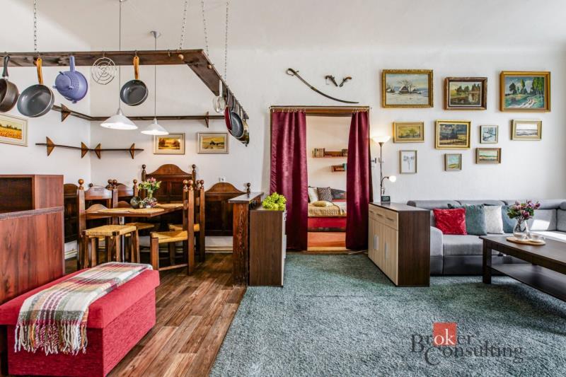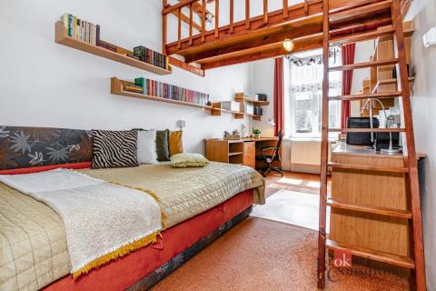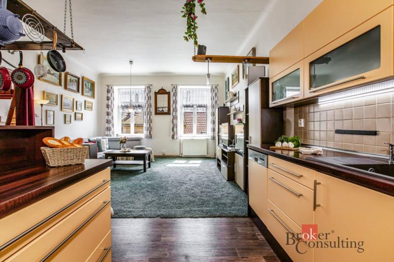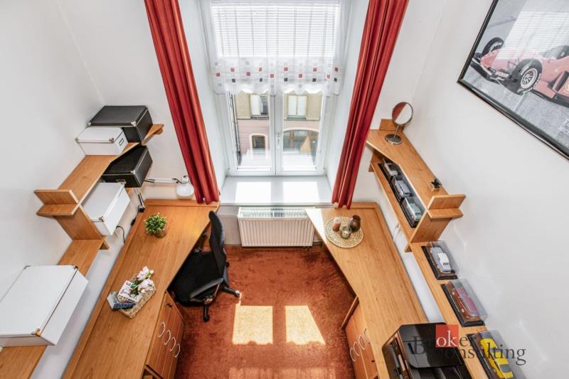 Ve výhradním zastoupení nabízíme ke koupi prostorný byt 2+KK o celkové ploše 71,4 m² v historickém centru Jihlavy na ulici Brněnská. Jde o atraktivní polohu cca 60 m od centrálního náměstí, v klidné části města. Byt je situovaný v 3. NP staršího cihlového domu s jedním podzemním a třemi nadzemními podlažími. Orientace na jih znamená krásné prosvětlení bytu a vysoké stropy jsou zde výhodou, protože umožnují například ložnici v patře, kde tak vzniká další příjemný prostor. K bytu náleží praktická komora 6 m² na chodbě ve stejném podlaží a možnost využívat i sklep a malý dvorek ve vnitrobloku. Dům je po částečné rekonstrukci a stejně tak i byt, včetně nových oken, kuchyňské linky, soc. zařízení, ústředního topení atd. Jihlava nabízí komfort krajského města - veškerá infrastruktura je prakticky v docházkové vzdálenosti a tento originální byt představuje příjemné bydlení v ekononomickém a kulturním srdci Vysočiny. Rádi vám byt ukážeme a sdělíme veškeré informace, takže zveme na prohlídku!