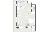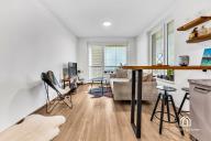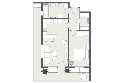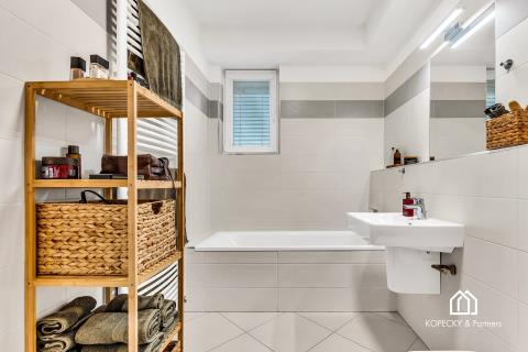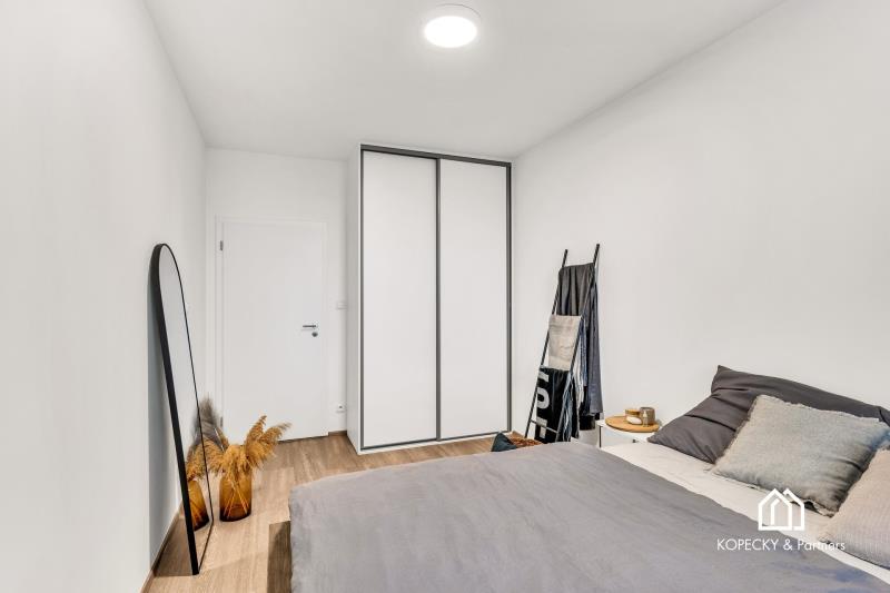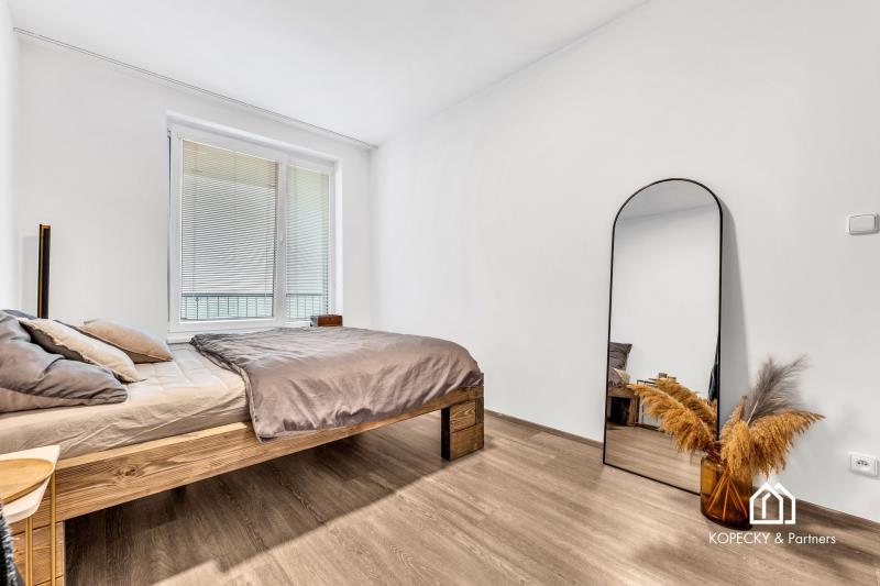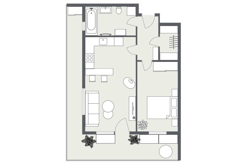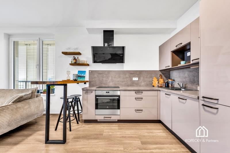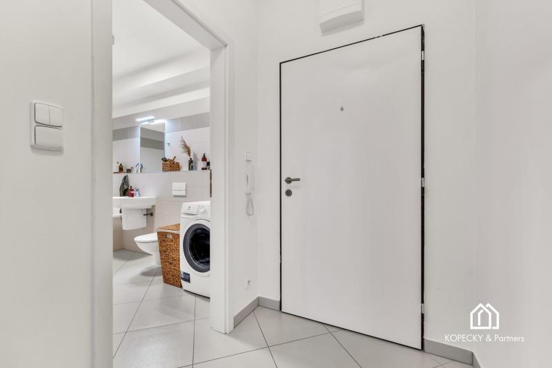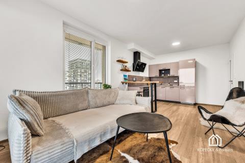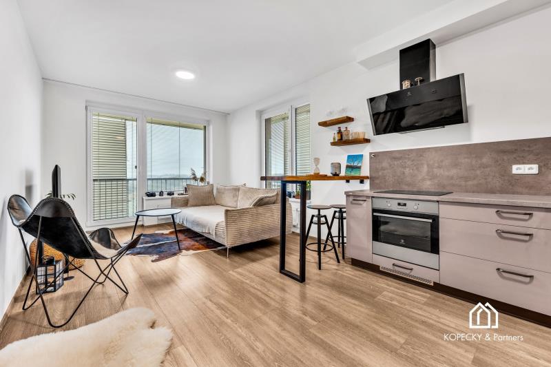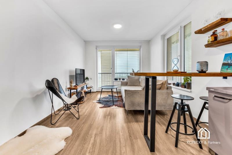 Dispozice bytu je navržená prakticky a s důrazem na každodenní komfort. Obývací část s kuchyňským koutem nabízí dostatek prostoru pro jídelní stůl i relaxační zónu, ložnice je samostatná a poskytuje klidné zázemí. Skutečnou přidanou hodnotou je prostorná terasa, která funguje jako druhý obývák v teplé části roku – ideální na ranní kávu, posezení s přáteli, zeleň i odpočinek po práci. Díky velikosti terasy získáváte pocit bydlení s venkovním prostorem, který se v Praze hledá čím dál hůř.
