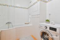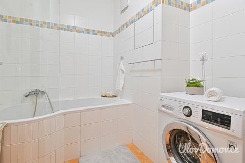 Ve výhradním zastoupení majitele nabízíme ke koupi byt 2+kk v osobním vlastnictví, který disponuje podlahovou plochou 61 m². Přísluší k němu prostorný balkón o výměře 13 m2, garážové parkovací stání a sklepní kóje o výměře 1,35 m2. Velkou výhodou nemovitosti je komora/šatna přímo v bytě, která nabízí nadstandardní úložný prostor o výměře 3 m2. Byt se nachází v 5. nadzemním podlaží bytového domu, který je součástí projektu Milíčovský háj z roku 2009 (developer Skanska). Výměry místností a příslušenství: • Obývací pokoj: 27,5 m² • Kuchyňský kout: 7 m² • Ložnice: 13 m2 • Koupelna: 4 m² • WC: 1,5 m2 • Předsíň: 5 m2 • Balkón: 13 m2 • Sklepní kóje: 1,35 m2 • Garážové parkovací stání Byt se nabízí vybavený. Součástí je kuchyňská linka s vestavnou troubou a mikrovlnnou troubou, sklokeramická deska, digestoř, lednice s mrazákem, myčka, pračka. Dále je součástí vybavení jídelní stůl a židle, barové židle, TV sestava včetně TV, manželská postel, noční stolky a vestavěná skříň. Lokalita: Nemovitost se nachází v klidné a vyhledávané rezidenční části vhodné pro pohodové rodinné bydlení. V bezprostřední blízkosti se nachází Milíčovský les, oblíbený k relaxaci a procházkám. V docházkové vzdálenosti je dostupná mateřská, základní škola i dětská hřiště. Autobusová zastávka Milíčov je vzdálena 4 minuty chůze od domu. Přímým spojením se dostanete za 3 minuty na metro Háje, která je zároveň dostupná i příjemnou procházkou cca 15 minut. V bytě bydlí prověřený nájemníci s platnou smlouvou do 30.4.2026, kterou by rádi prodloužili. Aktuální nájemné je ve výši 21.900 Kč + zálohové platby a elektřina. Ráda vás nemovitostí provedu osobně a zodpovím všechny vaše dotazy. Tereza Lev Certifikovaná realitní makléřka