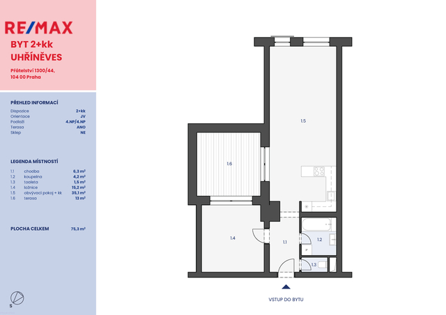Prodej moderního, prostorného bytu 2KK s atriem – terasou (celková plocha 75 m²) s možností jednoduché úpravy na 3KK v žádané lokalitě Praha – Uhříněves. Byt se nachází jen pár kroků od Uhříněveské obory a centra a je umístěn ve 4. posledním patře domu s bezbariérovým přístupem a výtahem. Rezidentní parkování před domem. Co nemovitost nabídne? • plocha bytu 62 m² • plocha atria/terasy 13,6 m² přístupná z obou pokojů • výtah přímo k bytu – bezbariérový přístup • příjemně světlý a vzdušný, otevřený prostor • vestavěné skříně na míru • nová podlaha Woodplastic na terase • obývací pokoj s vekou, prostornou kuchyňskou linkou • moderní vzhled bytu podtrhují betonové stěrky • samostatné WC • rezidentní parkování před domem Hlavní výhody nemovitosti? • možnost jednoduché úpravy příčkou na dispozici 3KK • skvělá poloha u obory, centra, vlakové zastávky • obchod s potravinami přímo před domem (otevřeno až do 21h) • v suterénu domu vyhlášená resturace, kadeřnický salón, nehtové studio • zásilkovna box/ alza box/ PPL box hned u domu • školy, školky, lékařský dům v těsné blízkosti • kompletní občanská vybavenost v docházkové vzdálenosti Dopravní dostupnost • vlakové nádraží 2 minuty chůze (centrum Prahy do 20 minut - spoj každých 15 minut) • autobusová zastávka přímo před domem - spoj Průhonice, Chodov, Černý Most • snadné napojení na D1 a nově vznikající část Pražského okruhu - úsek 511 Náklady – měsíční zálohy činí 4 600 Kč Máte zájem o prohlídku nebo potřebujete více informací? Kontaktujte mě, rád Vám vše ukážu. A pokud zvažujete prodej své nemovitosti i vy, zavolejte mi – rád Vám pomohu s přípravou, prezentací a úspěšným prodejem. LUKÁŠ DUSÍK realitní makléř RE/MAX ALFA web LUKASDUSIK.CZ