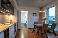 Nemovitost se nachází v nízkoenergetické novostavbě (energetický štítek B), kolaudace domu v roku 2023. Technické zázemí zahrnuje vlastní kotelnu v domě zajišťující vytápění a ohřev vody, což v kombinaci s energetickou úsporností budovy zaručuje nízké měsíční náklady. Součástí vybavení je luxusní kuchyně na míru se všemi vestavnými spotřebiči (indukční deska, myčka, pračka, trouba, mikrovlnka). Bezpečnost zajišťují certifikované vchodové dveře. Byt byl dodatečně nadstandardně odhlučněn.