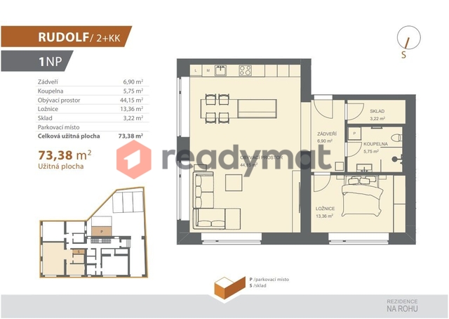 Nový a nadstandardně řešený byt 2+kk o výměře 73 m², který spojuje komfortní bydlení, nízké provozní náklady a výbornou polohu v klidné části města, jen kousek od centra. Byt zaujme promyšlenou dispozicí i kvalitním vybavením. Samozřejmostí je například klimatizace v každém pokoji, podlahové vytápění i venkovní elektricky ovládané skryté hliníkové žaluzie. Dispozici tvoří prostorný obývací pokoj s přípravou na kuchyňský kout, samostatná ložnice, větší koupelna s toaletou a praktická šatna. Velkou výhodou je možnost jednoduché úpravy na 3+kk doplněním příčky s dveřmi. Byt je dokončen ve standardu: hotové jsou finální vinylové podlahy, omítky, bílá výmalba i koupelna s toaletou, zásuvky, dveře. Chybí pouze kuchyňská linka a koncové osvětlení, takže si nový majitelé můžou finální podobu interiéru dokončit dle vlastního vkusu. V případě zájmu zajistíme kontakt na ověřené truhláře, kteří již realizovali kuchyně a nábytek v rámci rezidence. Díky orientaci obytného pokoje na severovýchod a ložnice na severozápad je byt příjemně světlý a dobře větratelný. PENB: D. Součástí ceny je také parkování ve vnitrobloku, což je v městské lokalitě výrazný benefit. Byt je vhodný jak pro vlastní pohodlné bydlení, tak i jako zajímavá investice k pronájmu. Je připraven k prohlídkám. Pro více informací nás neváhejte kontaktovat.