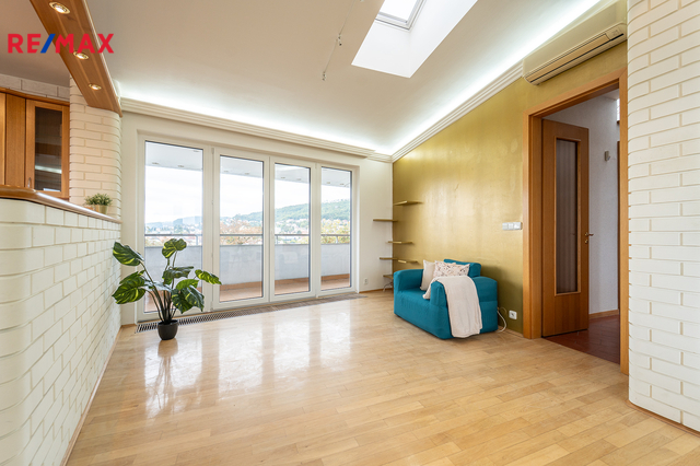 Veškeré informace naleznete na www.byt-radotin.cz Nabízíme Vám ke koupi bytovou jednotku ve vynikajícím stavu o celkové užitné ploše 79,3 m2 + terasa 43,3 m2 + sklep 2,6 m2 s garážovým parkovacím stáním v suterénu budovy. Byt, nacházející se v 5. nadzemním podlaží skeletového domu, se skládá obývacího pokoje s kuchyňským koutem, ložnice, koupelny s toaletou a chodby. Byt v osobním vlastnictví je v původním a udržovaném stavu nacházející se v domě z roku cca 2000. Okna jsou plastová, jádro zděné, rozvody elektřiny v mědi. Okna jsou orientována na západní, jižní a východní stranu. Vnitřní prostory domu jsou ve výborném stavu, pravidelně udržované. Dům je celkově zateplený. Byt se nachází v klidné části Prahy – Radotíně, obklopené přírodou a s výbornou občanskou vybaveností. V pěší vzdálenosti najdete obchody, školu, školku, poštu, sportoviště i lékaře. Radotín nabízí ideální kombinaci městského komfortu a venkovského klidu. Dopravní dostupnost je skvělá – vlakem jste na pražském Smíchově za 15 minut, autobusové linky zajišťují přímé spojení s metrem B (Smíchovské nádraží). Autem se snadno napojíte na Pražský okruh i dálnici D5 směrem na Plzeň. Koupi bytu lze financovat pomocí hypotečního úvěru, jež Vám taktéž pomůžeme výhodně zařídit. Spolupráce s konkurenčními realitními makléři vítána. PENB nebyl ze strany SVJ prozatím dodán, údaj bude aktualizován.