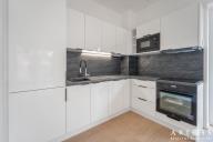 Byt je vybaven kvalitní kuchyňskou linkou na míru od stolaře, včetně špičkových vestavných spotřebičů Electrolux:
