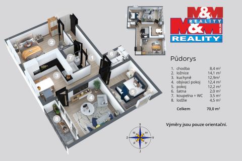 K prodeji, Byt 3+1, 76 m2 Jílové, Na rovině