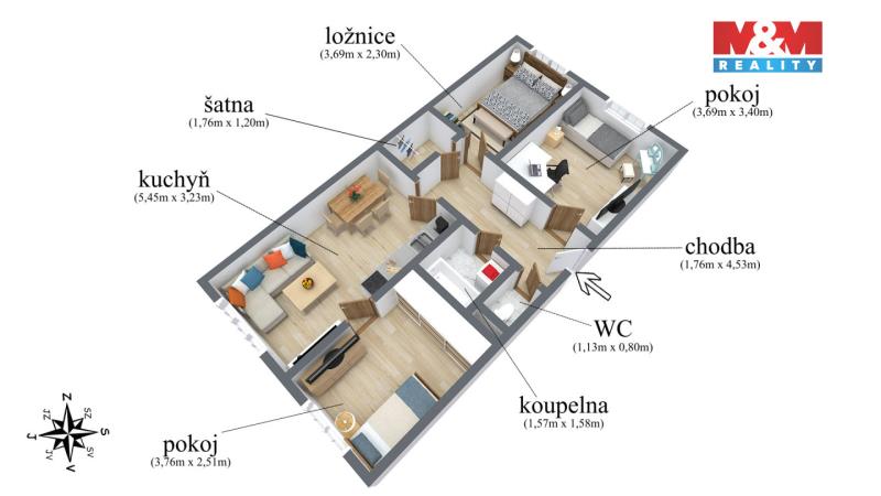 K prodeji, Byt 1+kk Most, M. G. Dobnera