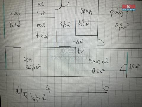 K prodeji, Byt 2+1, 56 m2 Pardubice, Jindřišská