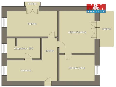 K prodeji, Byt 2+1, 52 m2 Benešov, Bezručova
