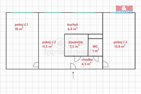 K prodeji, Byt 3+1, 63 m2 Chrudim, Jabloňová