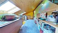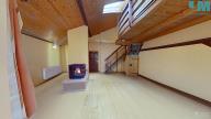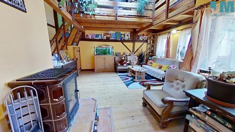 Dominantou bytu je prostorný obývací pokoj s krbem na dřevo, kde se snoubí hřejivé teplo ohně s útulností dřevěných podbitých stropů. Odtud vedou i dveře na balkon s výhledem do klidného vnitrobloku, ideálního pro ranní kávu či večerní posezení. V obýváku se také nacházejí dřevěné schody, které vás zavedou do originálně vytvořeného hracího prostoru – místa, které ocení zejména rodiny s dětmi.