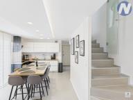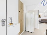 První úroveň bytu tvoří vstupní chodba, kuchyně s jídelním koutem, prostorný obývací pokoj se vstupem na velkou terasu a úložný prostor pod schodištěm. Ve druhém patře jsou dvě pohodlné ložnice, koupelna a velká terasa. V podkroví je prostorná ložnice a navazující část, kterou lze využít jako šatnu, domácí kancelář nebo víceúčelový prostor. Z podkroví je otevřený výhled na město a částečný výhled na moře.