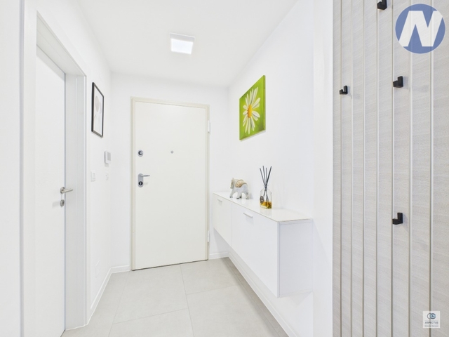 V ceně je zahrnuto kompletní vybavení – kvalitní nábytek, domácí spotřebiče i televizory. V bytě je instalováno podlahové vytápění (mimo ložnice), které jsou vybaveny klimatizačními jednotkami pro vytápění i chlazení. Ložnice mají vestavěné skříně a podlahy jsou pokryté kvalitními dubovými parketami.