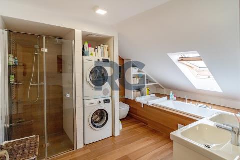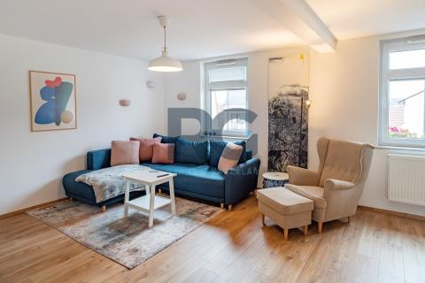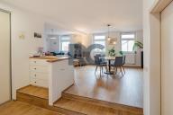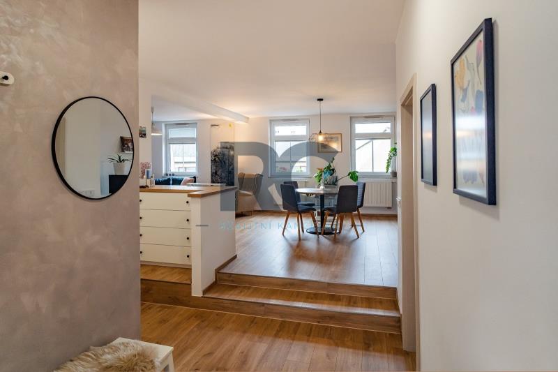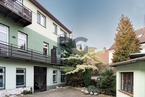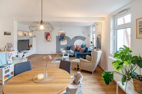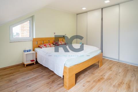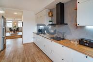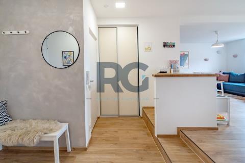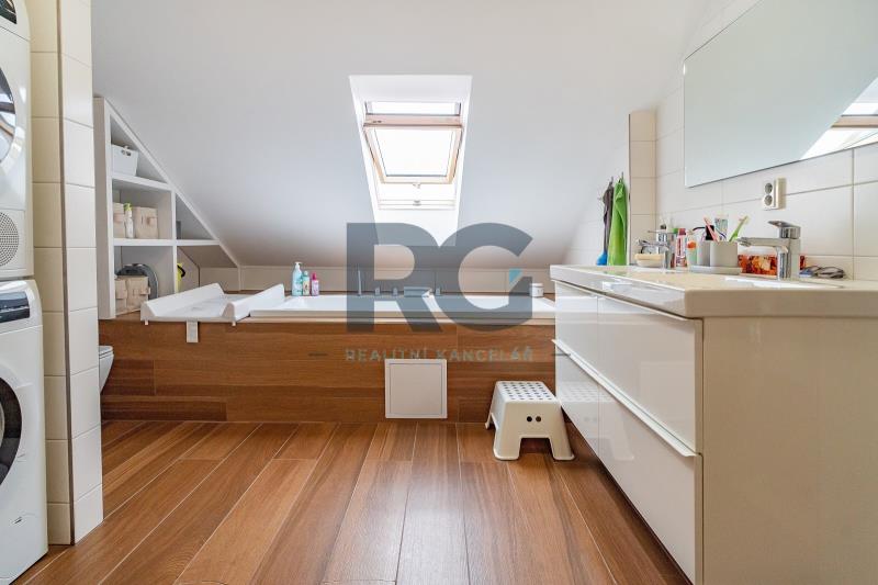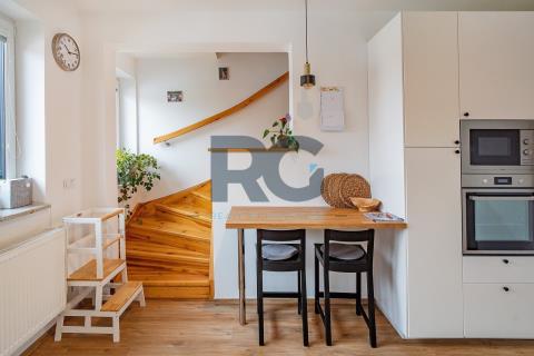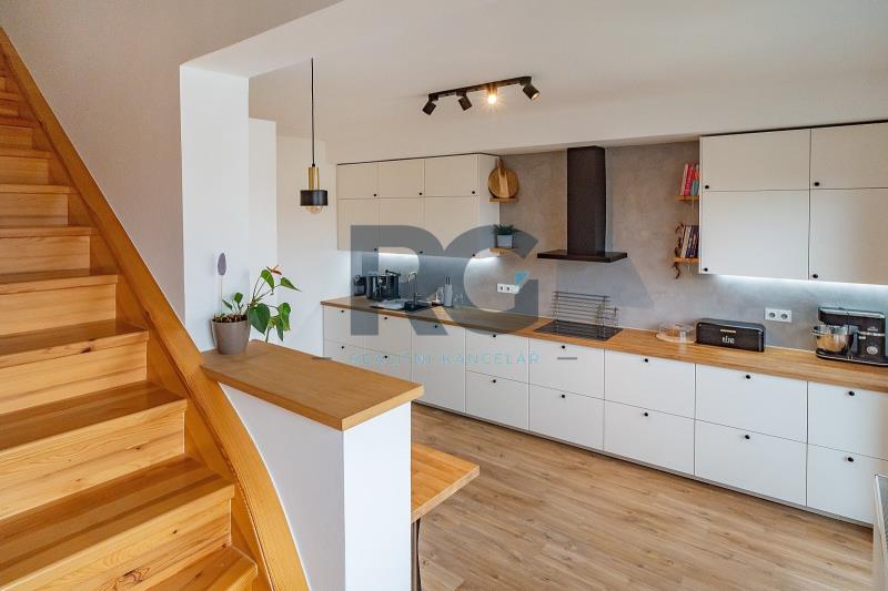 Exkluzivně nabízíme k prodeji nadstandardní mezonetový byt o dispozici 3+1 s balkonem. Byt o výměře podlahové plochy 134 m2 nabízí v dolní části světlý obývací prostor spojený s jídelnou, plně vybavenou kuchyni, předsíň a samostatnou toaletu; v patře se nachází dvě ložnice a koupelna s toaletou. Z obývacího prostoru se vstupuje na prosluněný balkon situovaný do zahrady domu. Kuchyňská linka disponuje spotřebiči - varná deska, digestoř, trouba, mikrovlnná trouba, myčka. Koupelna je spojená s toaletou a je zde umístěný sprchový kout, vana, dvě umyvadla. Zázemí pro pračku a sušičku je taktéž v koupelně. V bytě se nachází dva úložné prostory o výměře 0,98m2 a 1,64 m2. V dolní části bytu jsou okna opatřena žaluziemi, všechna okna mají zatemňující rolety. K bytu náleží zděný sklep a podíl na společných částech domu a pozemku. Pro více informací a sjednání prohlídky mě neváhejte kontaktovat.
