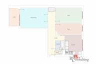 Dispozice bytu jsou - kuchyň - 10,38 m2, obývací pokoj - 16,30 m2, 1.pokoj - 12,15 m2, 2. pokoj - 8,51 m2, chodba - 11,45 m2, koupelna - 2,62 m2, WC - 0,93 m2, balkón - 5,48 m2, sklep - 1,2 m2.